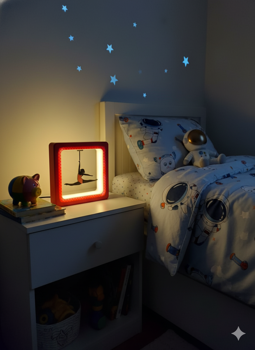 A iluminação LED difusa e suave valoriza os contornos internos, projetando sombras e brilhos que convidam ao olhar e ao descanso.